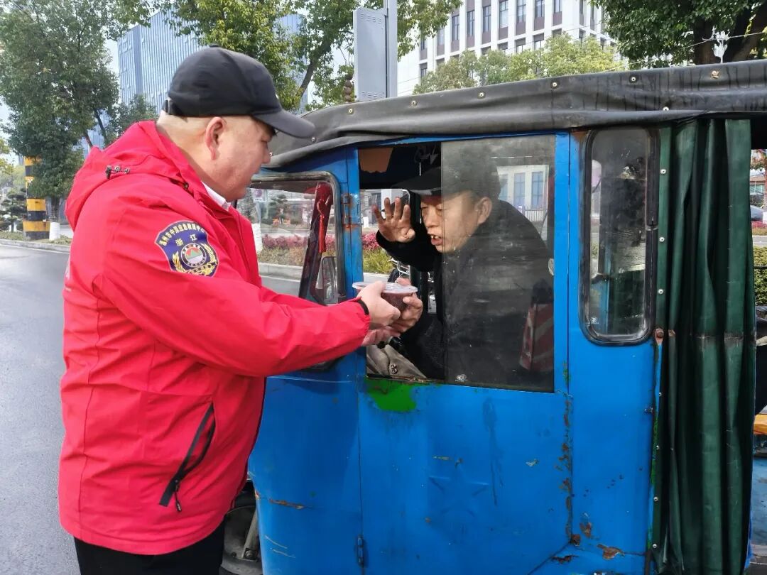 六点半刚过,已有市民陆续赶来。“没想到你们这么早就在这儿了!”第一位领到粥的张大爷捧着热粥,感动不已,“这粥闻着就香,喝起来更是暖到心坎里,你们辛苦了!” 队员们笑着回应:“不辛苦,您趁热喝,喝完暖暖身子。” 一碗碗热粥从保温桶中舀出,递到市民手中,传递的不仅是岁末的暖意,更是人与人之间最真挚的善意。