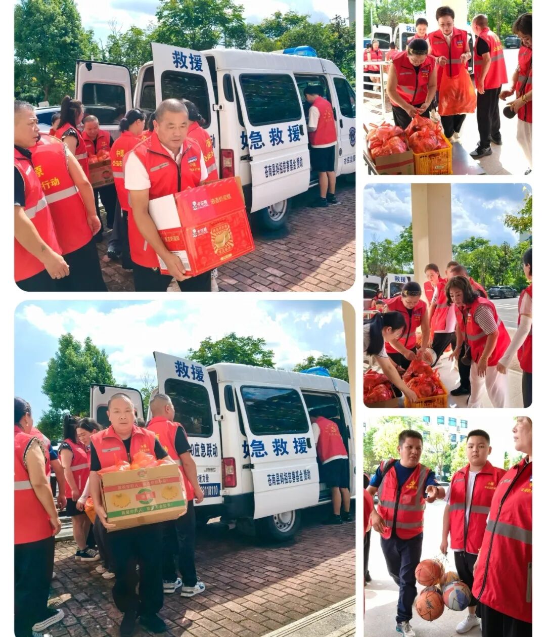 队员们精心筹备的慰问品,像一串藏满惊喜的“爱心清单”:笔和本子是为孩子们铺开的“梦想画布”,纸面泛着崭新的光泽,等着他们用色彩与文字勾勒想象;彩色的球是“快乐开关”,鼓鼓囊囊的模样,仿佛下一秒就要蹦跳着陪孩子们在院子里撒欢奔跑;新鲜水果透着水润的清香,牛奶盒上的卡通图案憨态可掬,各式食品整齐排列,还有那个盖着奶油花的大蛋糕,甜香早早飘进院子,每一样都在悄悄诉说“我们惦记着你”。