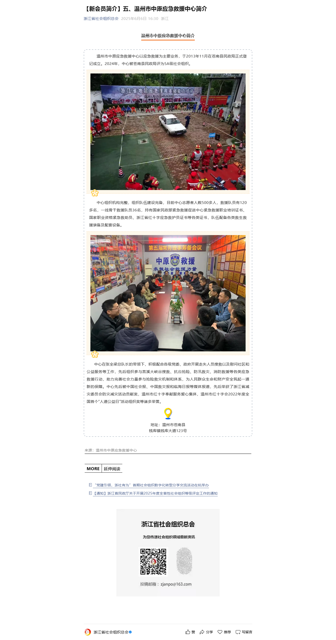 【新会员简介】五、温州市中原应急救援中心简介